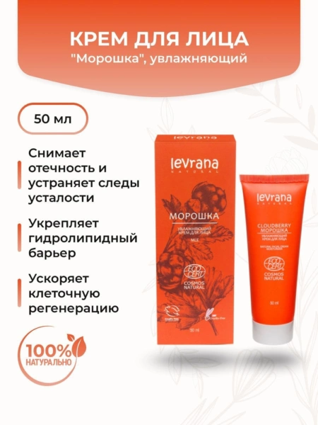 Увлажняющий крем для лица «Морошка» устраняет шелушения, ощущение стянутости; смягчает и предохраняет клетки от трансэпидермальной потери влаги.