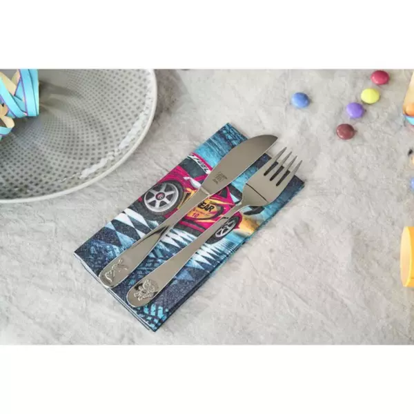 Наборы детских столовых приборов идеально подходят для маленьких детских рук, которые только учатся пользоваться ножом, вилкой и ложкой. Для обеспечения безопасного обращения ножи в наборах тупые. Столовые приборы украшены разноцветными картинками, которых обязательно полюбят дети. Благодаря качественной обработке изображения не стираются в посудомоечной машине.