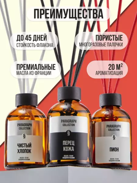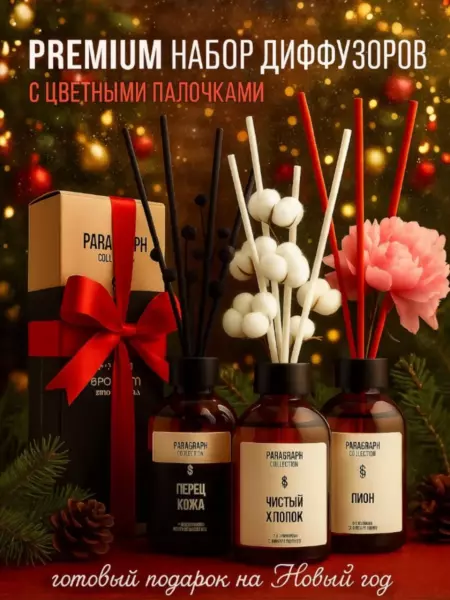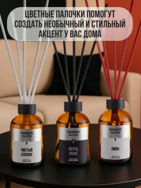 Парфюмированные диффузоры с ароматами «Перец Кожа», «Пион» и «Свежий хлопок» — изящное подарочное предложение для создания волшебной атмосферы и хорошего настроения. Эти ароматы не только обогатят ваш интерьер, но и наполнят его изысканными нотками, оставив незабываемое впечатление у каждого гостя.