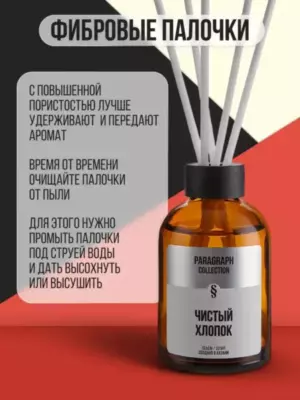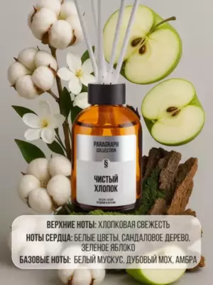 Диффузор "Чистый хлопок": освежающий и бодрящий запах, создающий ощущение чистоты и свежести.