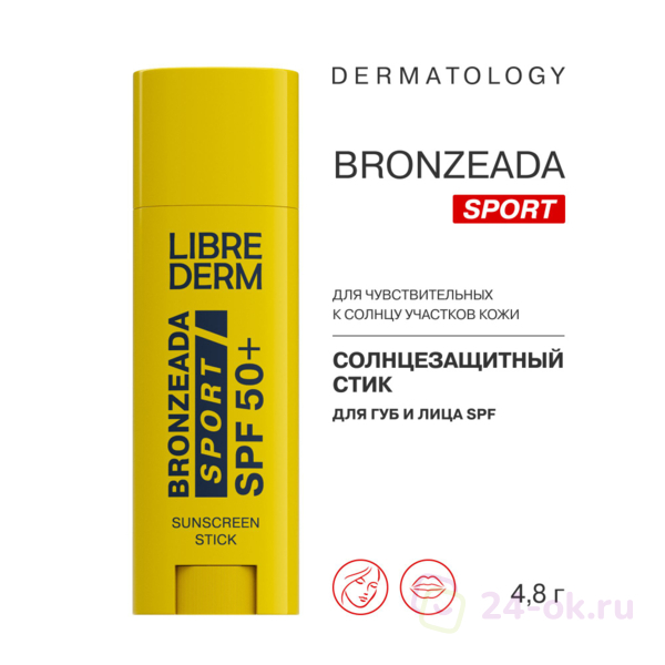 LIBREDERM BRONZEADA SPORT солнцезащитный стик для губ и лица SPF 50+ 4,8 г