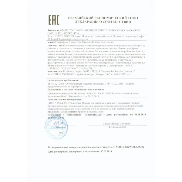 Европейский Союз присвоил оливкам Kalamata маркировку P.D.O. (Protected Designation of Origin) «Защищеннное обозначение происхождения». Для потребителя такая маркировка - это гарантия высокого качества. Её удостоены только те продукты, происхождение, компоненты и метод производства которых хорошо известны.