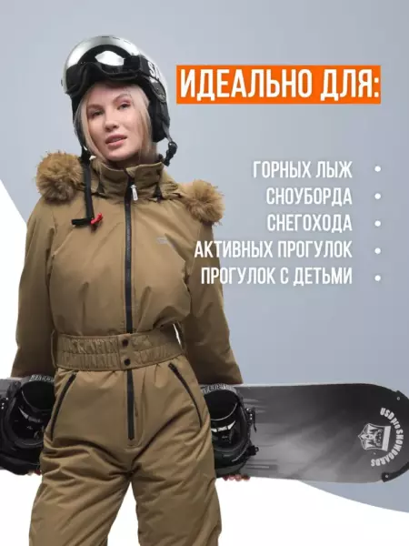 Зимний женский утепленный комбинезон рассчитан на температуру от 0 до -25 градусов. Костюм имеет капюшон мехом. Садится идеально по фигуре, при этом не сковывает движений. Лыжный костюм имеет широкий размерный ряд, для небольшого и высокого роста. Ширина голени и замок внизу комбинезона позволяет комфортно носить его как для занятий горными и беговыми лыжами, так и для сноуборда. Надежно защищает от влаги и ветра. Комбинезон не пропускает ветер, влагу, но выпускает наружу пар от активных движений. Водонепроницаемость мембраны 5 000 мм, воздухопроницаемость/паропроводимость 5 000 гр/кв.м/24 ч - вас не продует, ткань дышащая, отлично отводит влагу, комбез не промокнет. Прочный высокотехнологичный состав ткани устойчив к истиранию, не садится и не скатывается при стирке. Застежки и молнии спортивного комбинезона созданы по стандарту YKK, все швы проклеены для наилучшей водонепроницаемости. Есть подтяжки, благодаря которым верх можно снять в помещении. Талия регулируется ремнем, имеются снегозащитные гетры. Модель с внутренним нагрудным карманом и 2 внешними карманами. Теплый костюм для зимы подойдет для разных видов спорта: сноуборда, лыж, прогулок.