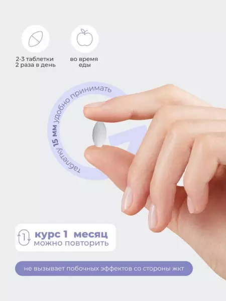 Рекомендации по применению: Взрослым по 2 таблетки 2 раза в день во время еды.