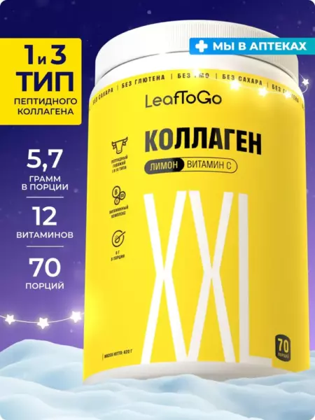 Сollagen LeafToGo - это натуральный продукт, созданный из высококачественного пептидного коллагена.