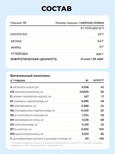 Принимать коллаген важно вместе с витамином C, который уже идет в составе. Поэтому никакие другие добавки вам не нужны.
