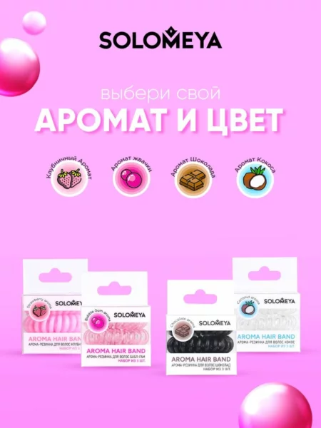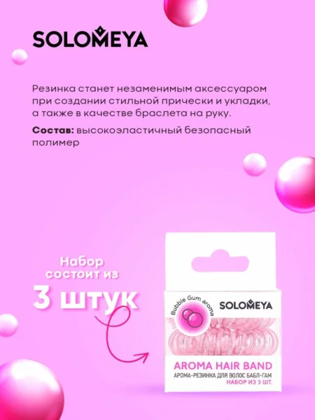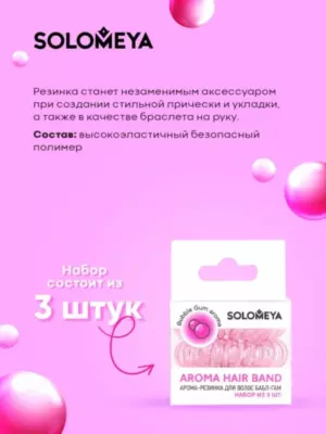 Solomeya Арома-резинка для волос Бабл-гам/ Aroma hair band Bubble Gum, набор из 3 шт bubble gum