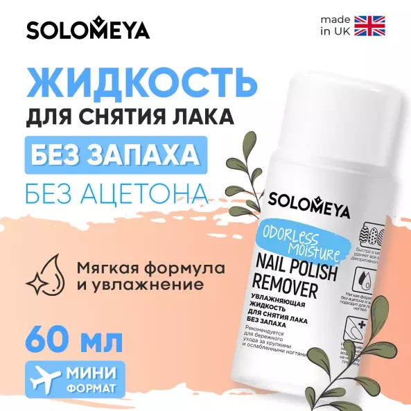 Жидкость для снятия лака без запаха от британского бренда Solomeya станет незаменимым помощником в уходе за ногтями. Она позволяет легко и быстро удалить лак, не повреждая ногтевую пластину.