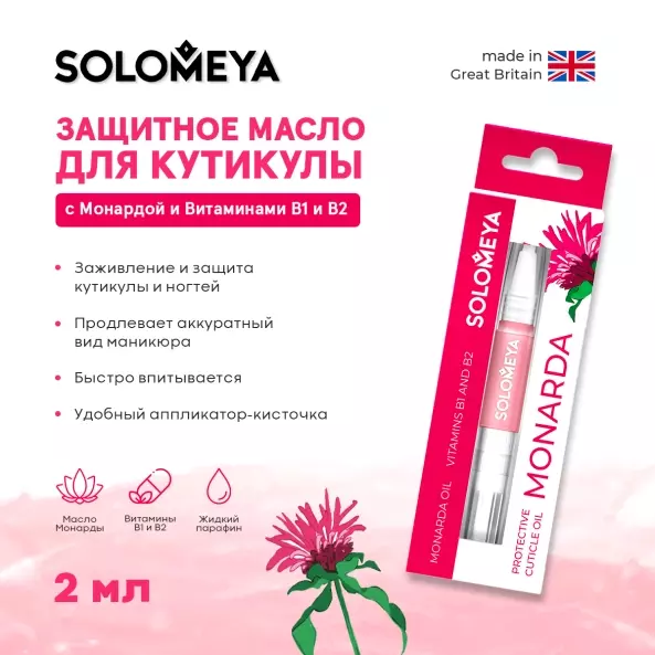 Solomeya Защитное масло для кутикулы с Монардой и Витаминами В1 и В2 / Protective cuticle oil with Monarda and Vitamins B1 and B2, 2 мл
