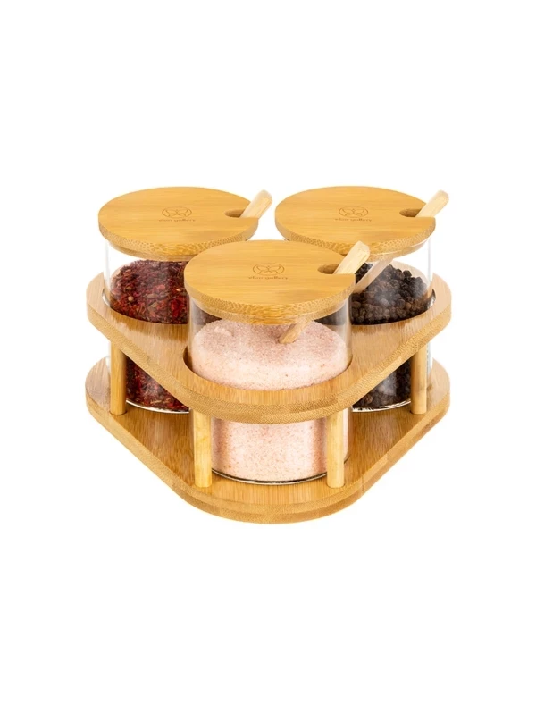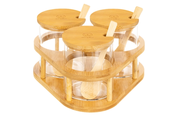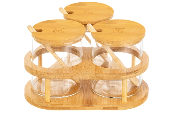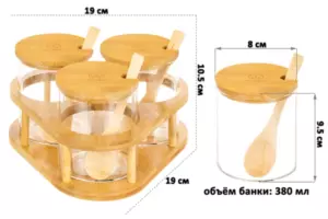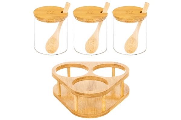 Набор 3 банок для хранения 380 мл 19*19*10,5 см "Crystal glass" с бамб. крышк, бам.лож, на бамб.подс