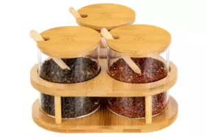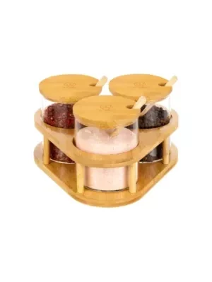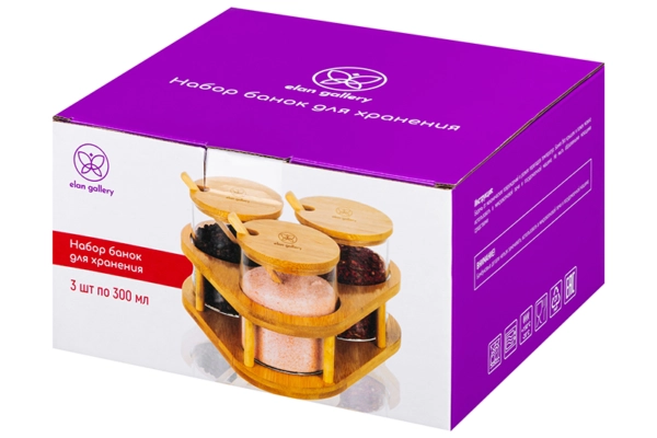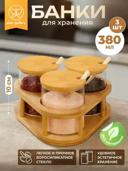 Набор серии Crystal glass состоит из 3-х стеклянных банок объемом по 380 мл на бамбуковой подставке. Оснащены крышками и ложками. Баночки выполнены из боросиликатного стекла. Такие контейнеры подойдут для хранения самых разных сыпучих продуктов и круп, муки, сахара, приправ или разных мелочей. Стильные баночки подойдут к большому количеству самой разной посуды и будут с ней хорошо сочетаться. Можно использовать как набор для специй с сахарницей, солонкой и перечницей. Размер набора 19х19х10,5 см. Размеры емкостей по 8х8х9,5 см. Банки без бамбуковых деталей можно использовать в СВЧ и ПММ. Бамбуковые детали нельзя замачивать. Набор поставляется в стильной картонной упаковке. Банки из серии посуды Crystal glass смогут стать удобным и эстетичным дополнением вашего дома!