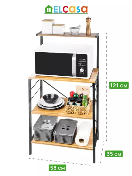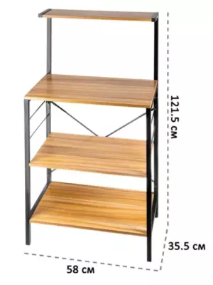 Стеллаж 58х35,5х121,5 см с 4-мя полками поможет в организации системы для хранения и эффективном использовании пространства. Органайзер выполнен из металла и МДФ. Металлическую этажерку можно разместить в любых комнатах: на кухне, в гостиной, прихожей, спальне. На полочках можно размещать ящики с вещами, контейнеры с инструментами, косметику, посуду, кухонные принадлежности, бытовую химию и многие другие вещи. Напольную тумбу можно использовать в роли подставки для СВЧ (микроволновой печи). В коридоре стойку можно использовать в роли обувницы. Универсальный шкаф с открытыми полками выполнен в стиле лофт и хорошо впишется в интерьер дома, дачи или офиса. Легко собирается. Крепежи входят в состав набора. Максимальная нагрузка на полку до 10 кг. Поставляется в прочной картонной упаковке. Универсальный шкаф с открытыми полками станет удобным офисным органайзером, подставкой для микроволновки или дополнительным местом для хранения других вещей.