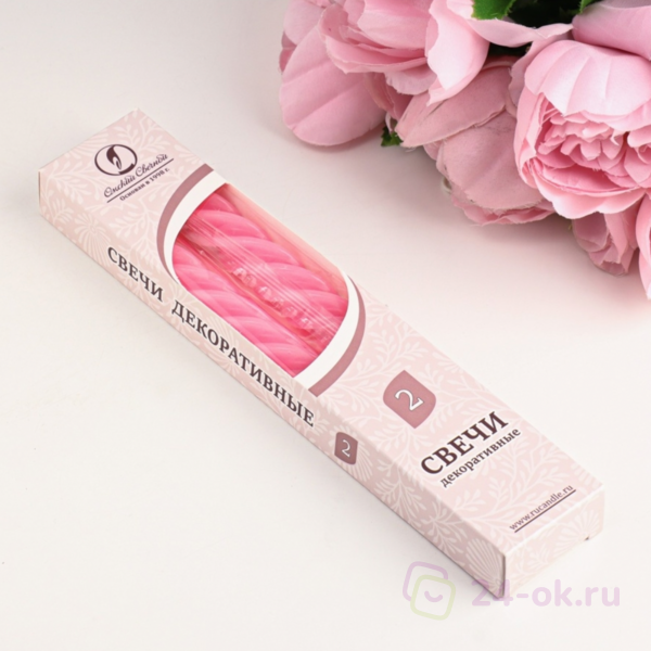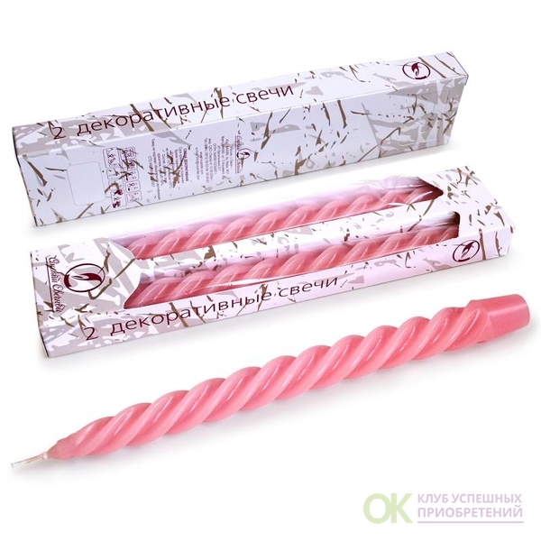 свеча витая 2 шт светло-розовая