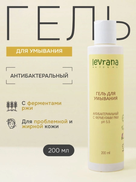 Гель для умывания АНТИБАКТЕРИАЛЬНЫЙ с ферментами ржи 200мл Levrana