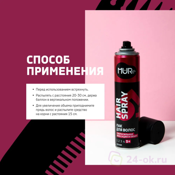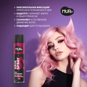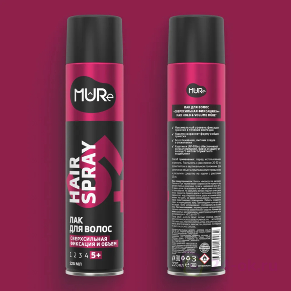 MURE Лак для волос Сверхсильная фиксация 5+ MAX HOLD & VOLUME 225 мл СГ до 11.2026