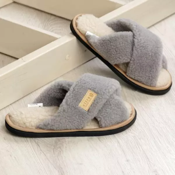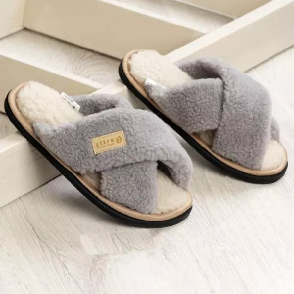 Описание: Тапочки-шлепанцы из натуральной овечьей шерсти с открытым мыском союзки