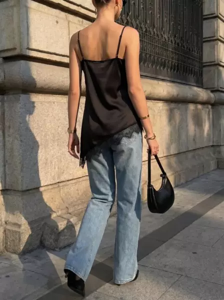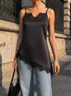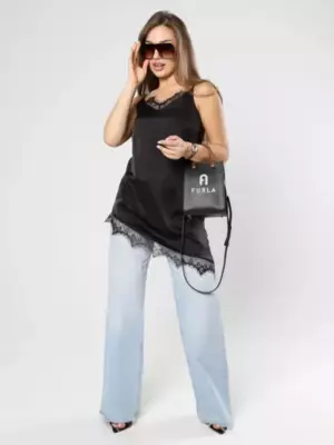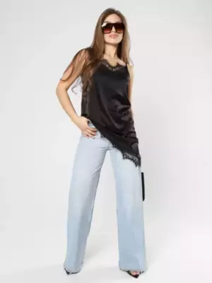 Лаконичный, но с характером — этот шелковистый топ создан, чтобы вы чувствовали себя уверенно и выглядели безупречно в любой ситуации. Аккуратные вытачки формируют идеальную посадку, деликатно подчеркивая силуэт, не сковывая и не перегружая образ. Регулируемые бретели позволяют точно настроить длину под себя — для максимального комфорта и идеального прилегания. Изящная кружевная отделка по линии декольте и по низу добавляет тонкую нотку женственности и делает топ визуально более утонченным и притягательным. Асимметричный крой та деталь, которая превращает базовую вещь в акцентную. Носите его с льняными брюками для расслабленного шика, с джинсами — для стильного повседневного образа или добавьте жакет и каблуки для выхода вечером. Этот топ — инвестиция в ваш гардероб, которая будет работать каждый день.