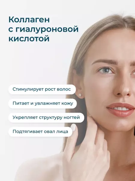 гидролизованный морской коллаген (пептидный коллаген), желатин (оболочка капсулы), гиалуроновая кислота, аскорбиновая кислота (витамин С)