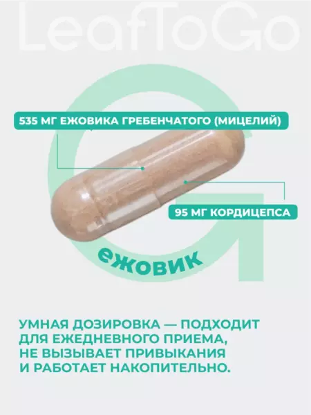 Ежовик гребенчатый LeafToGo — идеальное решение для тех, кто стремится к гармонии тела и ума. Этот суперфуд нового поколения сочетает высокое качество, эффективность и натуральный состав.