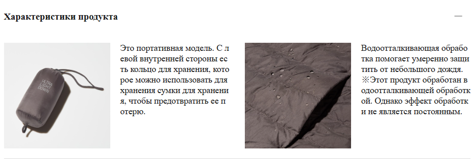 Водонепроницаемость※: это означает, что изделие обладает прочными водонепроницаемыми свойствами, а поверхность ткани обладает хорошими влагозащитными свойствами (не обладает свойствами защиты от проникновения). Поскольку водостойкий агент на поверхности ткани держится относительно прочно, даже если изделие носится (или используется) и стирается много раз, его водонепроницаемость все равно будет существовать (но по мере увеличения количества стирок эта эффективность будет постепенно ослабевать).