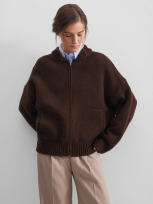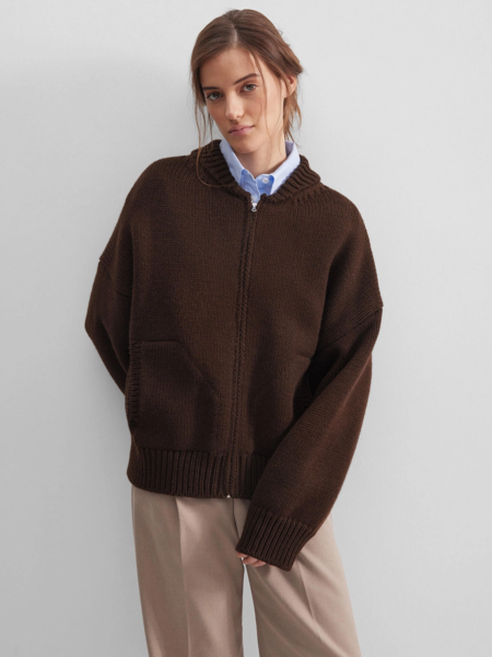 Лаконичный бомбер с выразительной фактурной вязкой на воротнике и карманах — современная интерпретация классического силуэта, в которой функциональность встречается с мягкостью трикотажа. Мы выбрали для этой модели нежную шерсть мериноса: она обладает природной терморегуляцией, позволяя чувствовать себя комфортно в любое время года. Свободный крой и спущенная линия плеча.