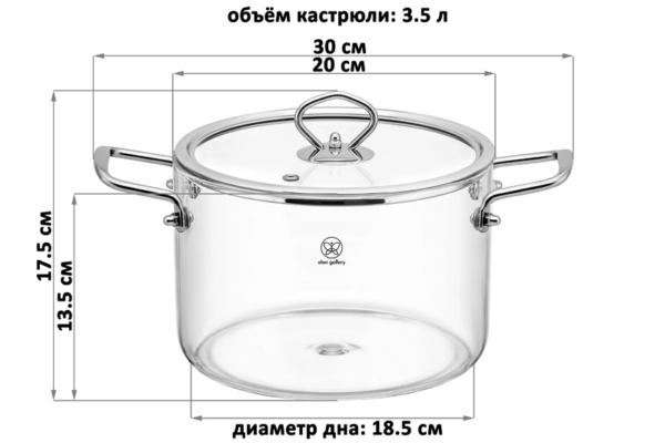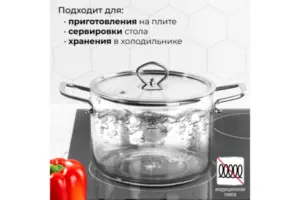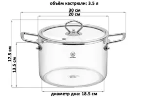 Кастрюля с крышкой Crystal glass 3,5 литра выполнена из жаропрочного стекла. Необычная кастрюлька подойдет для варки супов и спагетти. Прозрачная посуда для приготовления эстетично выглядит и подходит для красивой сервировки различных блюд. Стеклянную кастрюлю можно безопасно использовать для хранения продуктов в холодильнике. Подходит для газовых, электрических и стеклокерамических плит. Не подходит для индукции. Ручки выполнены из металла. Посуду с металлическими деталями нельзя использовать в СВЧ. Нельзя использовать на максимальной мощности конфорки. Избегайте резких перепадов температур. Набор поставляется в стильной картонной упаковке. Стеклянная термостойкая кастрюля станет удобным дополнением кухонного инвентаря или приятным подарком для ваших родных и близких.