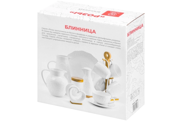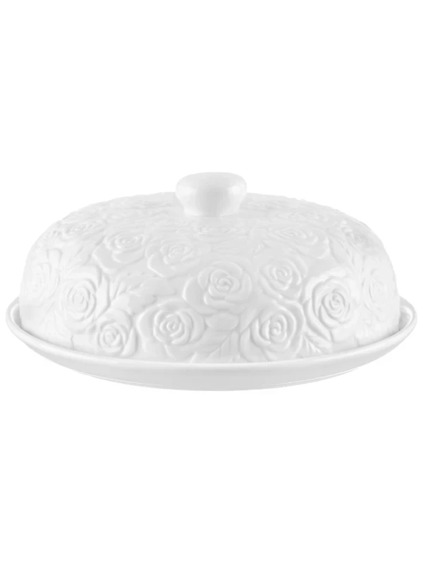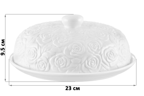 Блинница с крышкой Elan Gallery "Розы" размером 23х23х9,5 см выполнена из белого фарфора и украшена изящным рельефным узором. Высота без крышки 1,7 см. Можно использовать не только для хранения блинчиков и оладий, но и подачи печенья, кусочков торта и пирога. Под крышкой блины долго не остынут и сохранят свой первозданный вид и вкус. Блинница эстетично смотрится на столе и подойдёт для сервировки нарезки, бутербродов и выпечки. Блюдо с крышкой можно использовать для подачи сыра, шашлыка, пиццы, а также фруктов, десерта и разноса любых закусок на празднике. Фарфоровая посуда отличается от керамической повышенной плотностью. Фарфор не впитывает цвет продуктов и не деформируется от влаги, чему может быть подвержена керамика. Не рекомендуется применять абразивные моющие средства. Тарелку с крышкой можно использовать в посудомоечной машине и микроволновой печи. Поставляется в стильной картонной упаковке. Красивый кухонный инвентарь – отличный подарок для любой хозяйки! Сервировочное блюдо станет украшением вашего стола как на праздник, так и в будни и поможет сохранить тепло и аромат продуктов.
