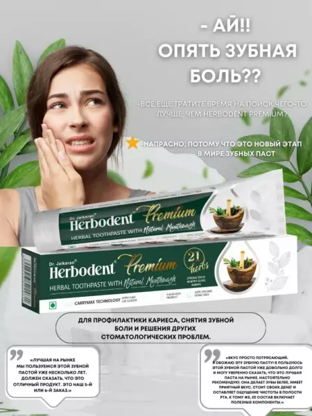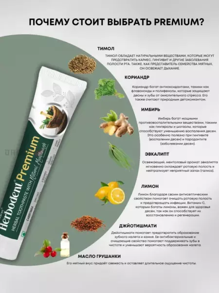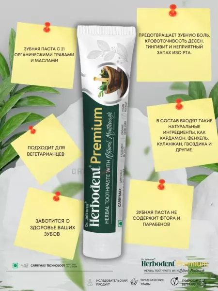 Зубная паста Хербодент Премиум без парабена и фтора (Premium Toothpaste Herbodent) 100гр
