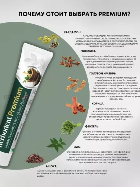 У пасты приятный натуральный вкус гвоздики с нотками кардамона и нима, который оставит ощущение свежести во рту надолго.