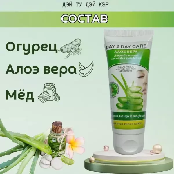 Аюрведическая Пенка для умывания (Дэй ту Дэй Кэр) Алое вера, 50 мл (Day 2 Day Care)