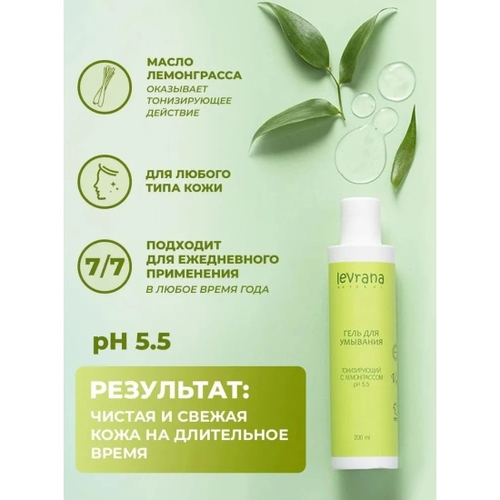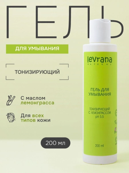 Гель для умывания ТОНИЗИРУЮЩИЙ с лемонграссом 200мл Levrana