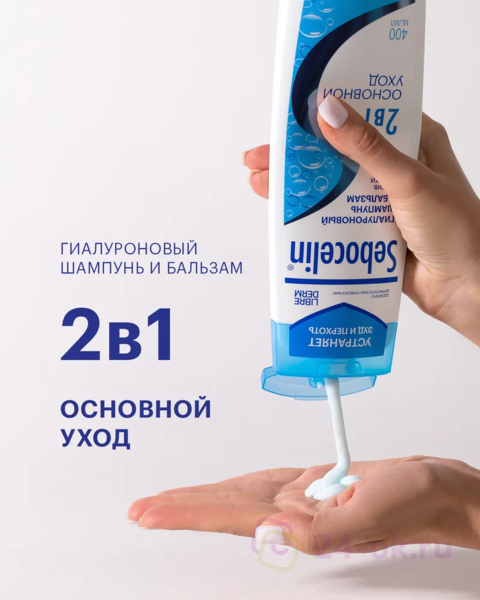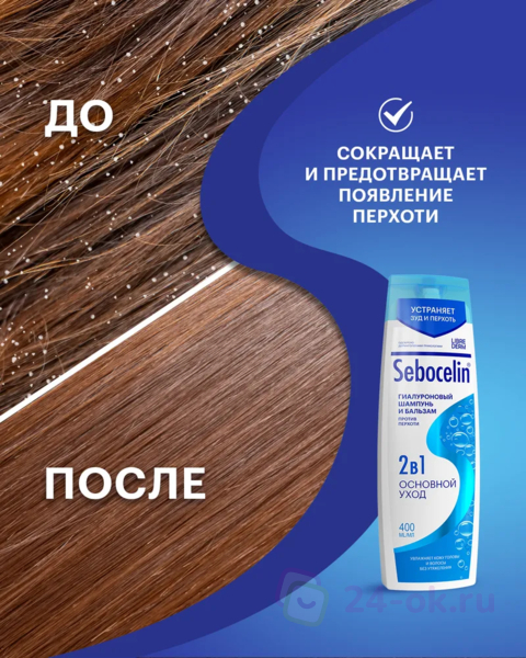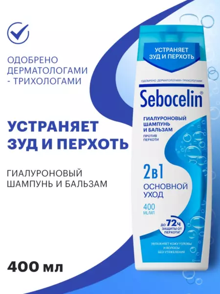 SEBOCELIN Гиалуроновый шампунь и бальзам 2 в 1 против перхоти Основной уход 400 мл