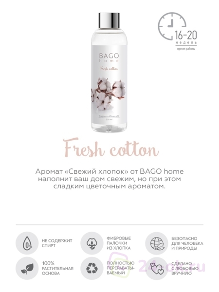 Свежий хлопок BAGO home наполнитель для диффузора 200 мл