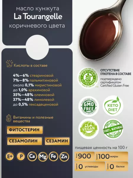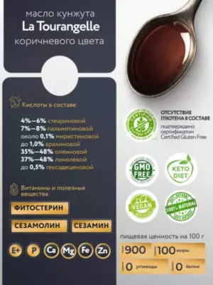 Масло кунжут нерафинированное Ла Туранжель 500 мл. Франция