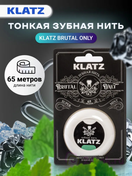 КЛАЦ Зубная нить Klatz BRUTAL ONLY Супер Мята, 65 метров