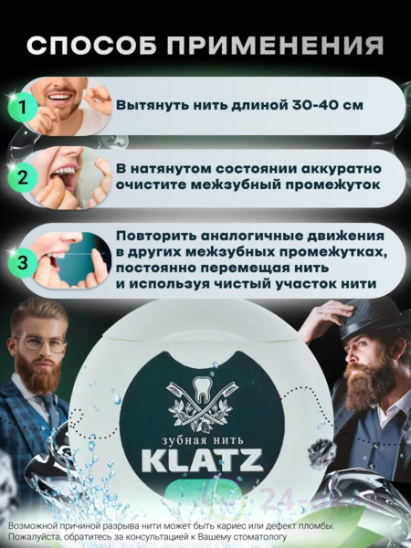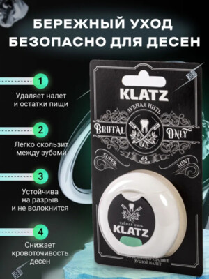 Зубная нить линейки Klatz BRUTAL ONLY "Супер Мята" предназначена для очистки зубов и межзубных промежутков от остатков пищи и удаления налета.