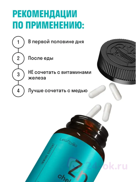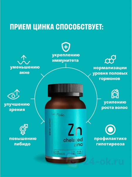 Представляем идеальный способ оставаться здоровым и сильным – Цинк Хелатный LeafToGo! Этот важный минерал необходим для хорошего здоровья и благополучия как у взрослых, так и у детей. Цинк помогает поддерживать здоровье кожи, волос, ногтей, костей, глаз и иммунной системы. Это неотъемлемая часть сбалансированной диеты, а также может помочь улучшить концентрацию и внимание. Витамины можно принимать в качестве добавки чтобы заменить такие продукты, как устрицы, красное мясо, швейцарский сыр и обогащенные злаки. С цинком Вы получите все основные преимущества здорового и сбалансированного питания, не беспокоясь о каких-либо потенциальных недостатках. Перестаньте чувствовать себя вялым и начните чувствовать себя лучше с витаминами LeafToGo уже сегодня!