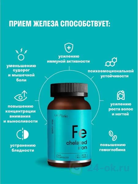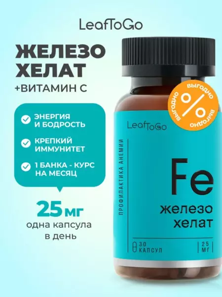 Витамины железо + витамин С LeafToGo - идеальный способ поддерживать уровень энергии на высоком уровне! В баночке содержатся необходимые витамины и минералы, которые дополняют естественные пищевые источники железа. Это помогает поддерживать выработку энергии, здоровье эритроцитов и способствует общему здоровью и благополучию. Получите необходимую жизненную силу с помощью этих удобных и простых в использовании витамин. Наслаждайтесь дополнительным преимуществом улучшенной концентрации и бдительности, а также повышенной физической выносливости. Благодаря натуральной формуле, не содержащей ГМО, это идеальный способ получить необходимые питательные вещества, необходимые для здорового образа жизни.