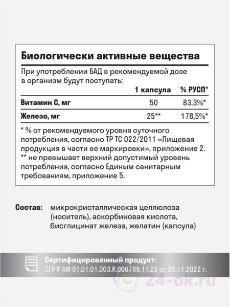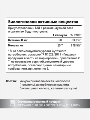 Железо хелат + Витамин С 25 мг (60 капсул)