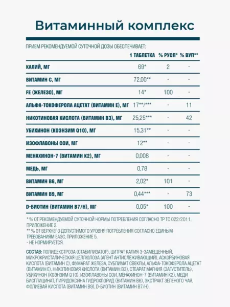 помогает поддерживать активный образ жизни, улучшает внешний вид и повышает уровень энергии. Его удобно принимать ежедневно — витаминный комплекс для женщин легко вписывается в повседневную рутину. Заботьтесь о себе, дарите организму необходимое и ощущайте баланс изнутри.