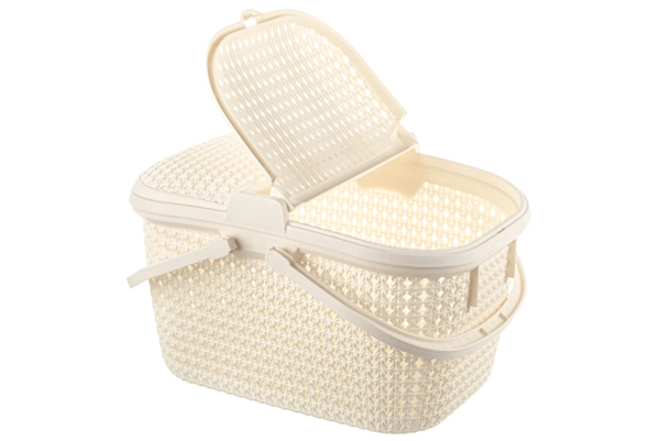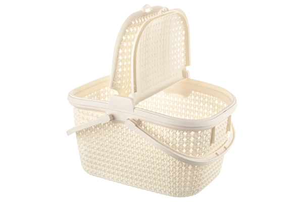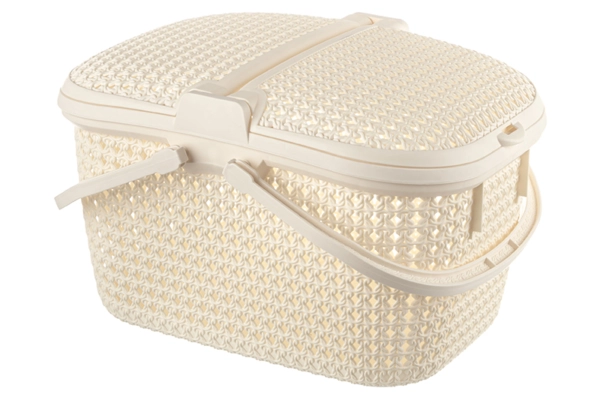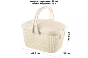 Корзина для пикника "Паола" 49,5х35х27,5 см имеет 2 крышки с защелками и 2 складные ручки. Объем емкости 25 литров. Корзинка выполнена из прочного пищевого полипропилена и имеет рельефные декоративные узоры с отверстиями для вентиляции. Пластиковую переноску удобно брать с собой на пикник с продуктами и посудой. Подойдет для сбора в саду фруктов и овощей, в лесу - ягод и грибов. Дома можно использовать для хранения различных вещей и мелочей. Большая корзинка "Паола" станет удобным дополнением вашего дома и отдыха на свежем воздухе!