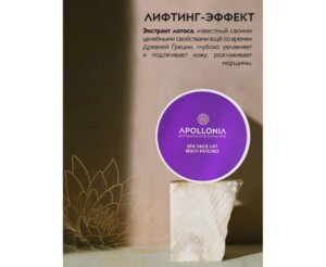 Патчи APOLLONIA SPA FACE LIFT интенсивно питают кожу, устраняют признаки старения и усталости кожи, а также дают ощущение легкости и спокойствия, как будто после спа-процедуры.