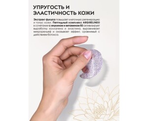 Экстракт фукуса повышает клеточную регенерацию и тонус кожи. Многофункциональный пептидный комплекс последнего поколения ARGIRELINE в сочетании с инулином и витамином В3 активизирует выработку коллагена и эластина, выравнивает микрорельеф и оказывает эффект, сравнимый с действием ботокса.