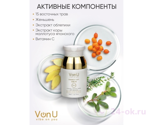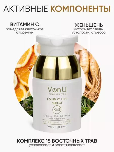VonU Омолаживающая сыворотка-энергетик для лица ENERGY UP! Serum 30ml