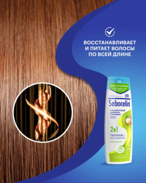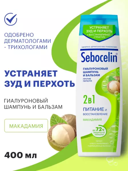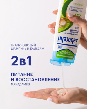 SEBOCELIN Гиалуроновый шампунь и бальзам 2 в 1 Макадамия Питание и восстановление 400мл
