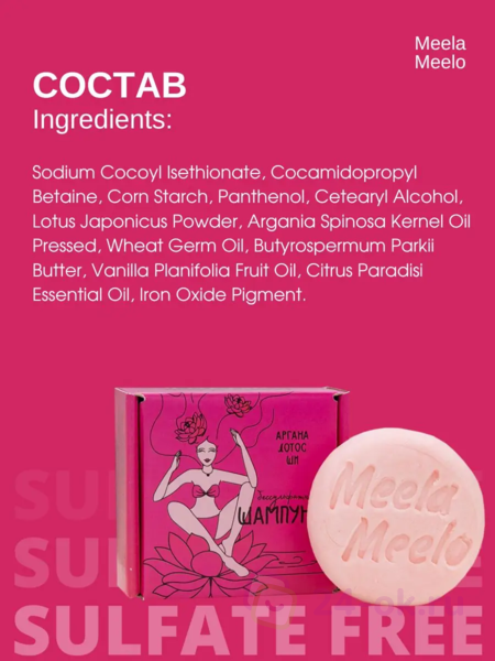Бессульфатный твердый шампунь «Аргана-лотос-ши»