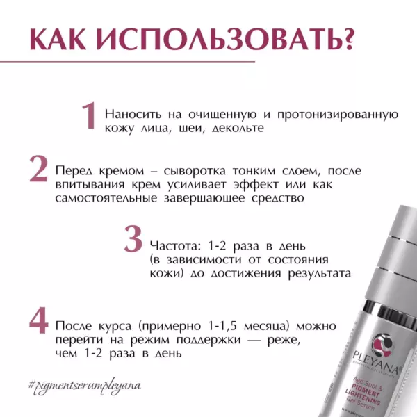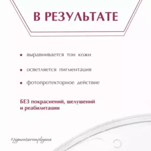 • эффективная борьба с пигментацией в домашнем и профессиональном уходе без изменения формулы и концентрации активных компонентов