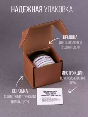 Свеча состоит из 100% натурального кокосового воска, ароматов с маслами, деревянного фитиля. Благодаря натуральным компонентам свеча безопасна и не выделяет вредных веществ. Эта ароматическая свеча идеально подойдет для создания приятной атмосферы перед сном, во время завтрака, романтического и семейного ужина, занятия йогой.