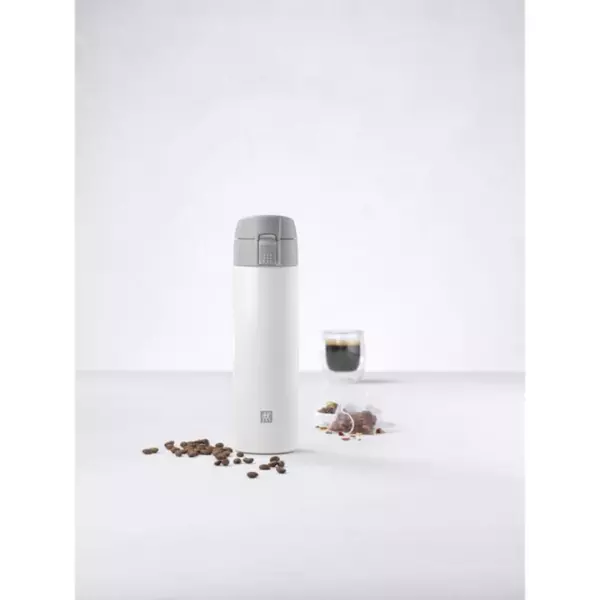 Никто не любит остывший кофе. Поэтому термокружка ZWILLING Thermo Travel - просто незаменимая вещь. Термокружка с вакуумной изоляцией сохраняет напитки горячими до 7 часов, а прохладительные напитки холодными - до 12 часов. Дорожная кружка белого цвета вмещает до 450 мл, ее можно мыть в посудомоечной машине. Защитный колпачок вакуумной кружки также гарантирует ее герметичность, так что Вы можете брать свой любимый напиток куда угодно, не опасаясь, что он прольется. Крышка открывается простым нажатием кнопки. При необходимости ее можно снять для быстрой очистки. Термокружка изготовлена из высококачественной нержавеющей стали и имеет практичную нескользящую основу. Она не выскользнет из рук при наполнении и мягко и почти бесшумно ставится на любую поверхность. Дизайн термокружки минималистичен и подчеркивает высочайшее качество. Привлекательно сдержанный и неброский белый цвет приятно дополняет даже самые контрастные интерьеры.