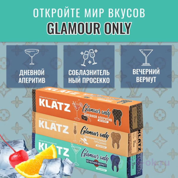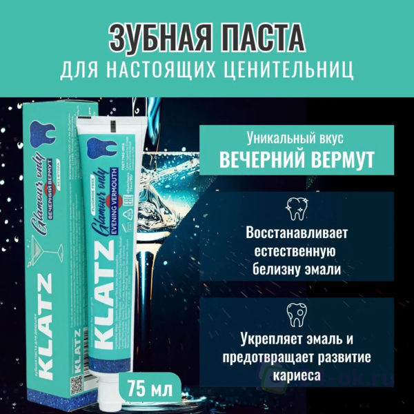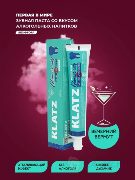 КЛАЦ Зубная паста для девушек Klatz GLAMOUR ONLY Вечерний вермут без фтора 75мл